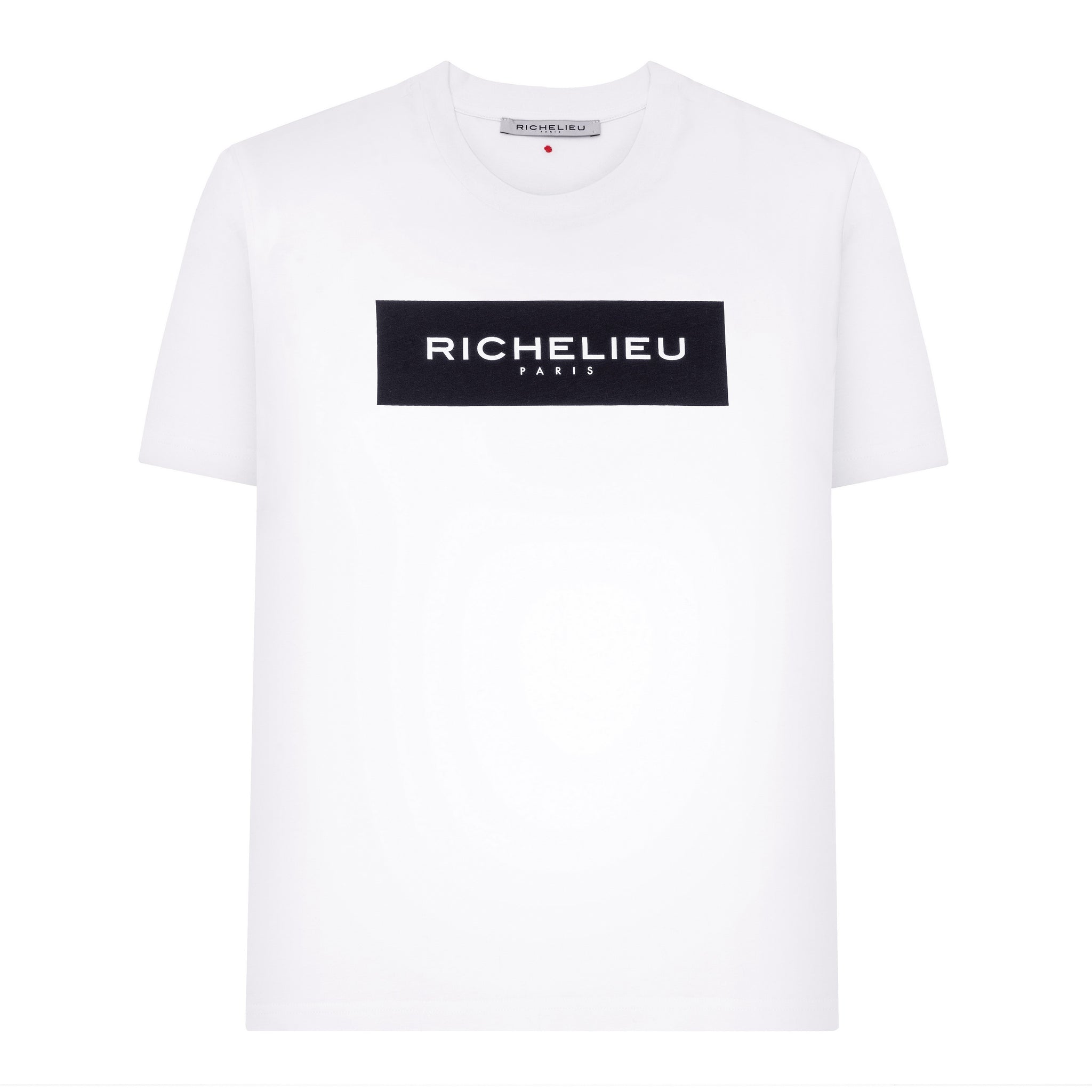 Classic, timeless, indispensable. This white T-shirt with short sleeves and round collar featuring the modern black Richelieu logo on the chest is destined to become a wardrobe staple.